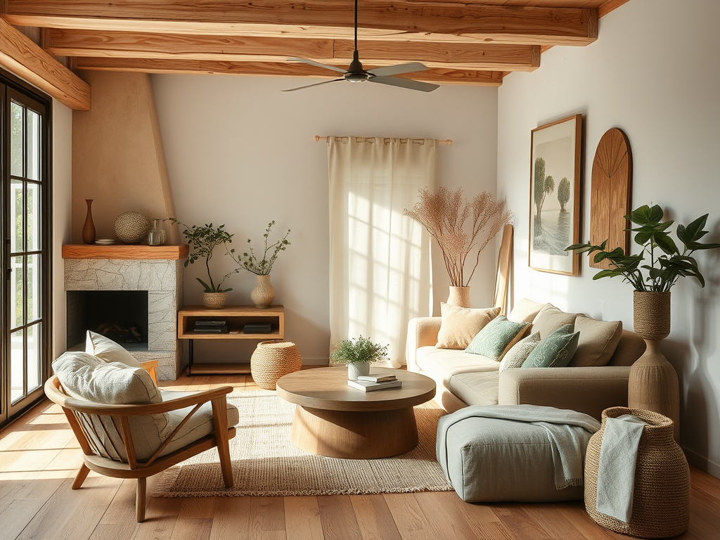 - Swap cushion covers to earthy textures